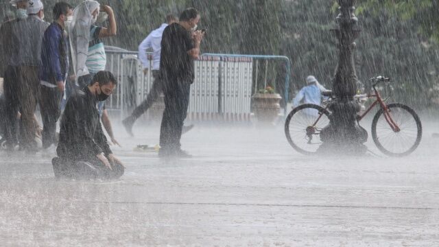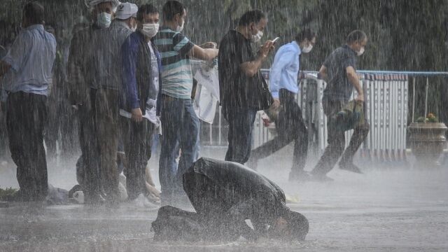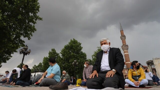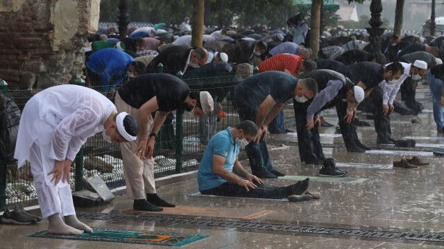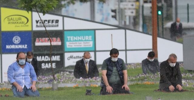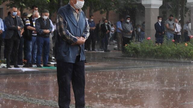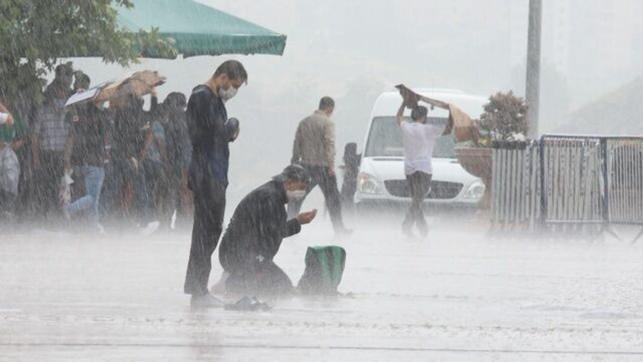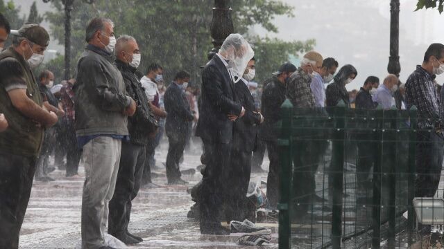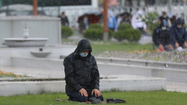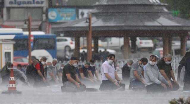 Sosyal medyada çok ses getiren fotoğraflarda vatandaşların şiddetli sağanağa rağmen namazlarını kılmaya devam ettikleri görüldü.