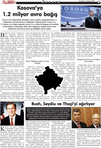 Türkiye, Kosova ile arasındaki mevcut köklü tarihi, kültürel ve beşeri bağların daha da güçleneceğine inanmakta olup, Kosova'nın kalkınmasını teminen yardım ve katkılarını sürdürecektir" ifadelerini kullanmıştı.