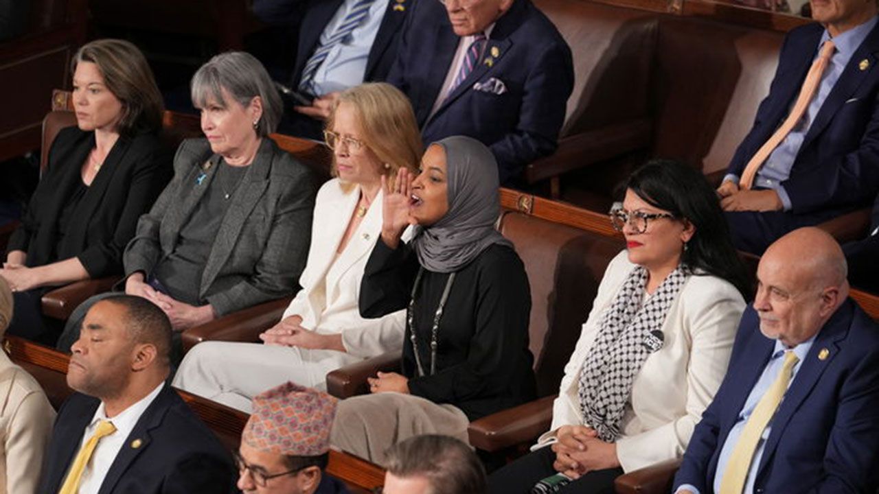 Demokrat üyelerin oturma eylemine kürsüden sert tepki gösteren Donald Trump, muhalefet sıralarına dönerek "Kendinizden utanmalısınız. Ayağa kalkmıyorsunuz" dedi. Donald Trump’ın bu sözlerine Kongre'nin Müslüman üyelerinden Ilhan Omar yüksek sesle karşılık verdi. Ilhan Omar, ABD Başkanı'na hitaben "Amerikalıları öldürdünüz, asıl siz kendinizden utanmalısınız" ifadelerini kullandı. Karşılıklı atışmaların yaşandığı genel kurul salonunda gerginlik bir süre devam ederken, bazı Demokrat üyeler de Donald Trump'ın üslubuna tepki gösterdi.